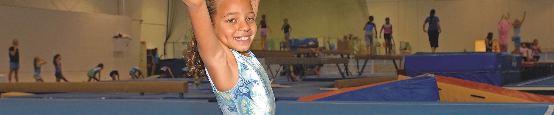 This class is designed for boys and girls three, four and five years old. Class content includes basic tumbling, body positions and locomoter skills, as well as primary apparatus skills.